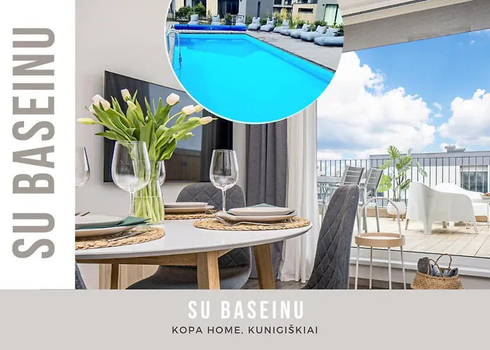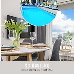 Located within a 15-minute drive of Bridge of Palanga, Smilga Home & Kopa Home - Mano Jura 2 Kunigiskiai - By Hello Sea Homes Palanga features a swimming pool with a sauna. Wi-Fi and parking are provided for guests' business or leisure needs.